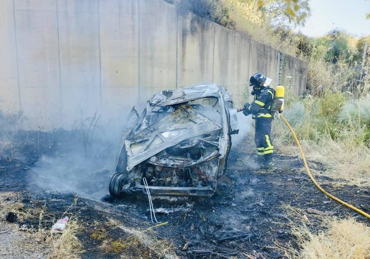 Un herido grave en Monesterio tras salirse su vehículo de la vía e incendiarse