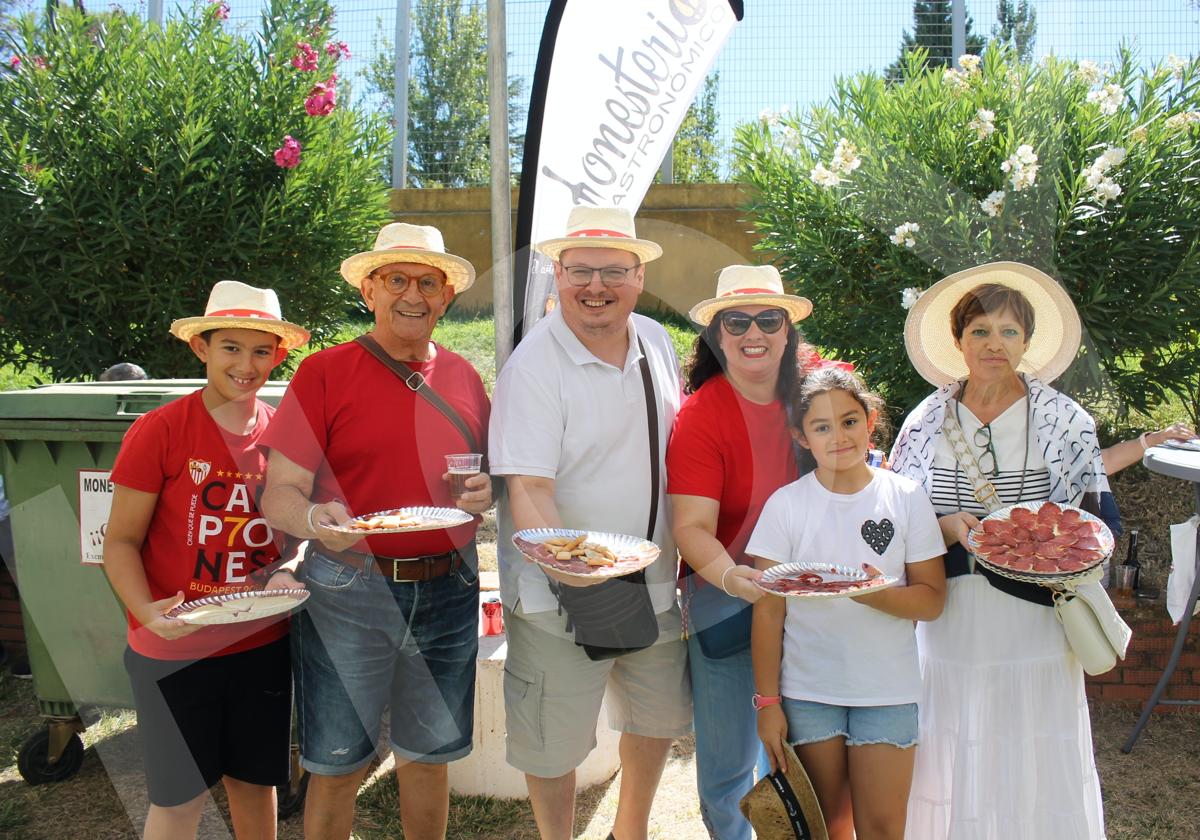 Cientos de visitantes, sobre todo de Andalucía, además de vecinos, llenaron este sábado en una nueva edición de la fiesta gastronómica el entorno del parque 'El Téjar' y de la piscina municipal. Allí se instalaron tres stands en los que los visitantes pudieron adquirir durante toda la jornada raciones de jamón, chorizo, salchichón, lomo en caña, queso, bebidas e incluso piezas completas de jamón, para los más valientes y atrevidos.