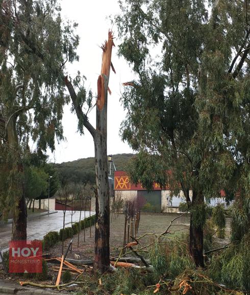 El miércoles por la noche, una encina caía a causa del temporal y atravesaba un camino asfaltado situado entre la N-630 y la localidad vecina de Calera de León. Fue necesaria la intervención de los servicios municipales y de la Guardia Civil. Ésta última mantuvo la vía cortada al tráfico hasta que el árbol pudo ser retirado.